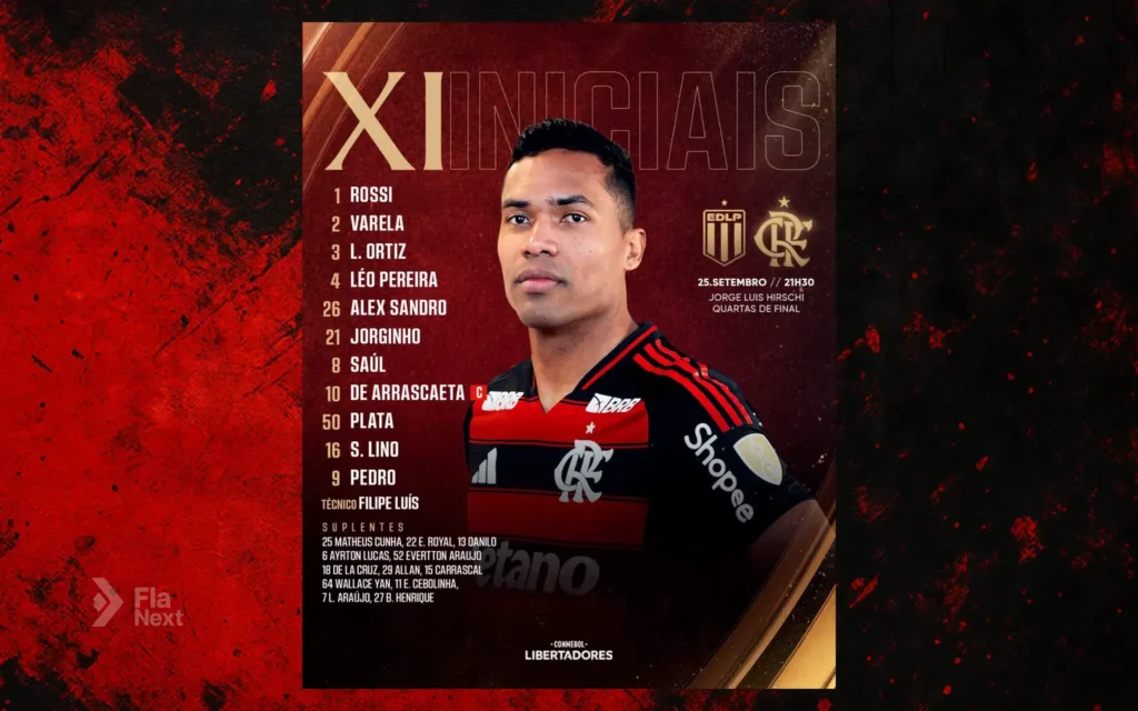 Filipe Luís confirmou a equipe titular, que vai a campo com: Rossi; Guillermo Varela, Léo Ortiz, Léo Pereira e Ayrton Lucas; De La Cruz, Saúl e Arrascaeta (C); Plata, Samuel Lino e Pedro.